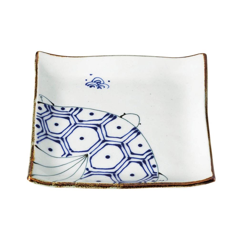 Plat carré Kotohogi en céramique Nishikai, style Hasami, motif Tortue, 19784, Moyen