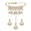 Tone Kundan Choker Necklace Earring Maangtikka & Ring Set For Women