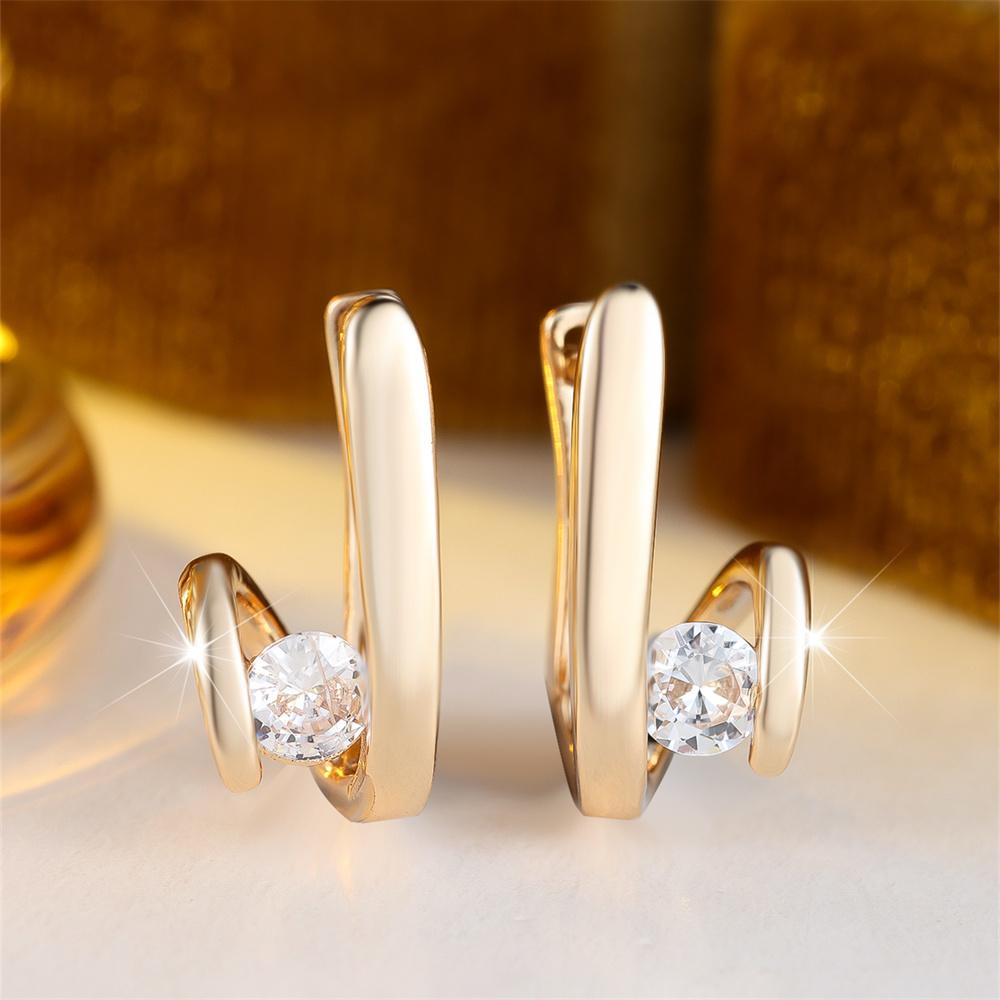 White Zircon Small Round Stone Hoop Earrings For Women Vintage Gold Color Tiny Ear Buckle Wedding Jewelry Engagement Party Gifts