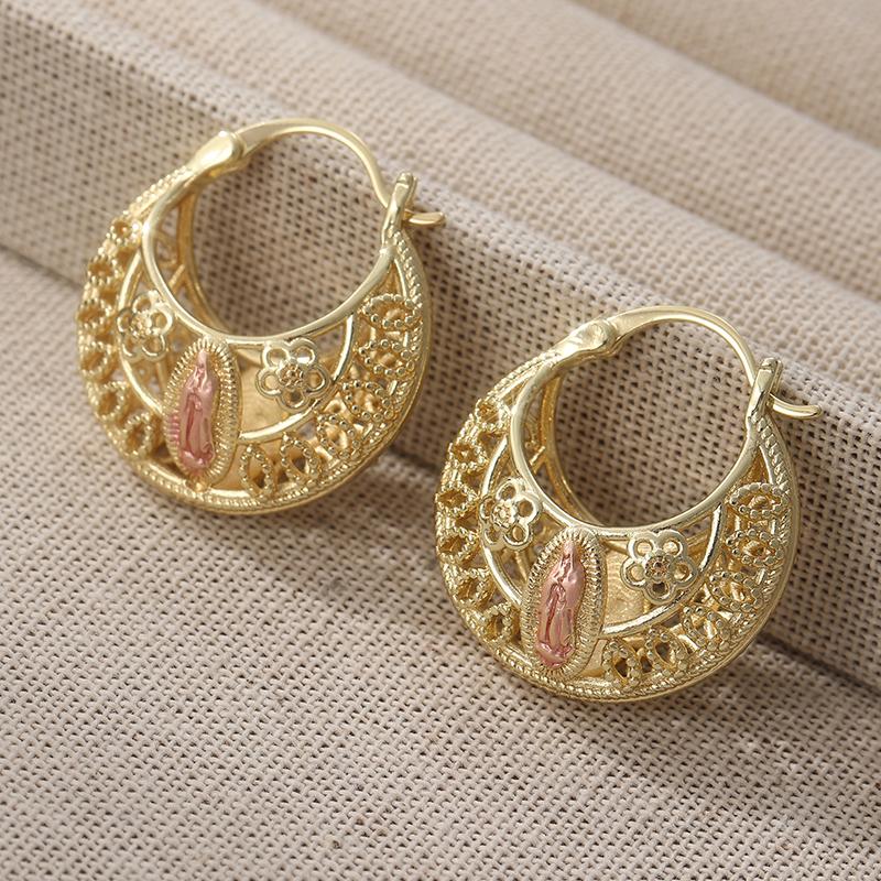 Vintage Hand Carved Hollow Flower Textured Hoop Earrings Women's Elegant Exquisite Golden Plated Banquet Festival Jewelry Crafts
