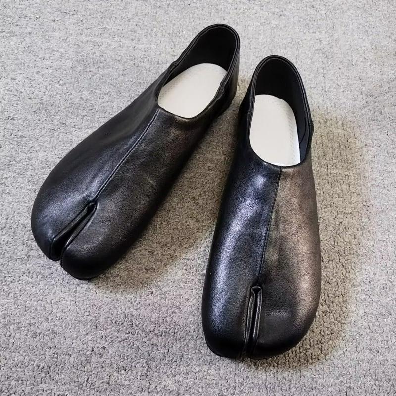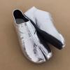 Pull on Black Tabi Shoes Women Flats Spring Autumn Fashion Silver Slip-on Loafers PU Leather Casual Split Toe Shoes Mary Janes