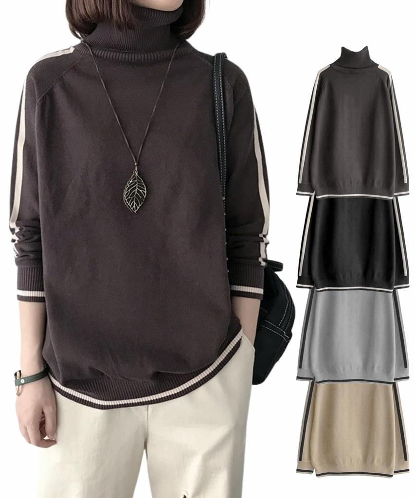 Sesong Long Sleeve Turtleneck Sweater with Stripes and High Neck Ribbed Knit Loose Plus Sizes Solid Perfect for and Winter Women's Top, Stretchy, Fit,