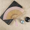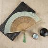 Folding Fan Chinese Style Dancing Fan with Tassels Bamboo Carving Handle Handheld Performance Fan Photo Prop