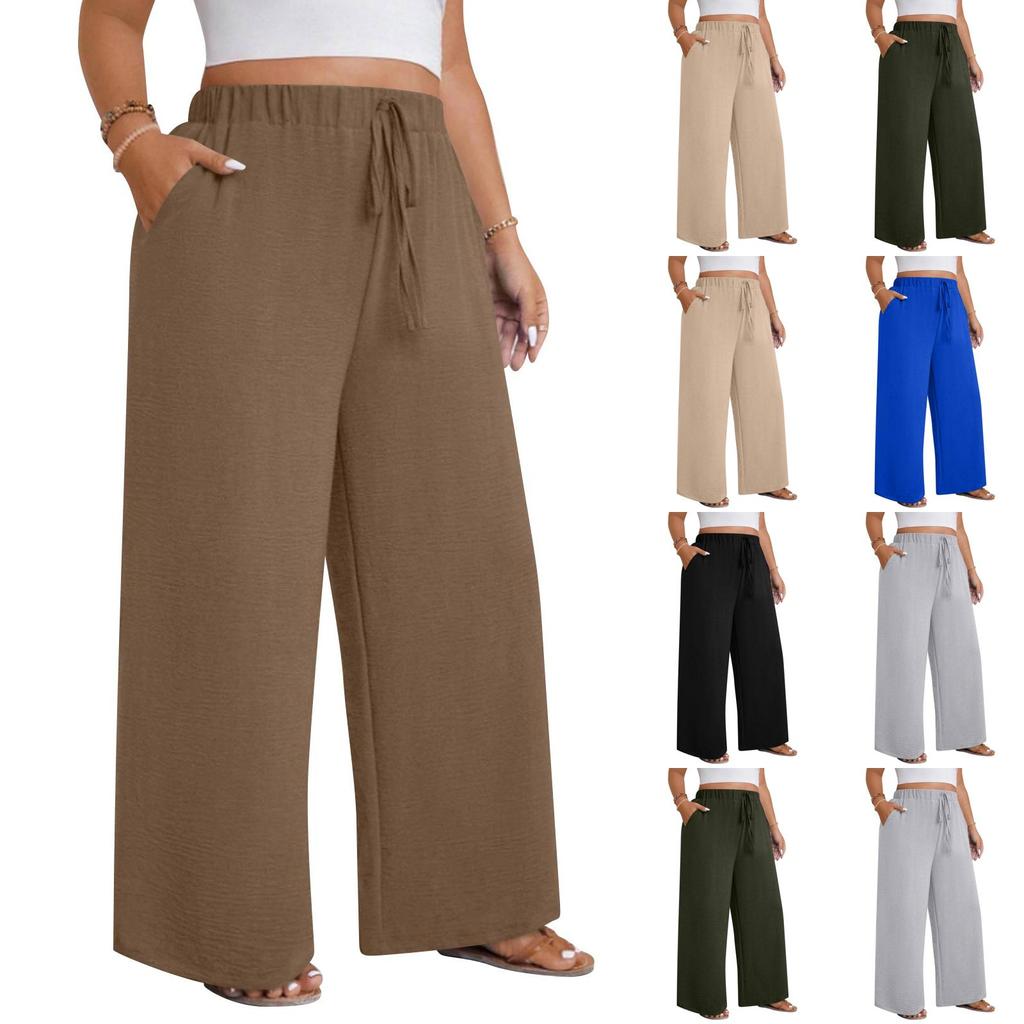 Pantalon Décontracté Mode Femme Grande Taille Coupe Ample Cordon de Serrage Jambe Large Jambe Droite