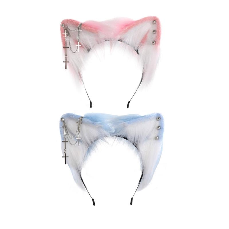 Bandeau Cheveux Oreilles de Chat Artificielles avec Boucle d'Oreille Métallique pour Spectacles d'Halloween