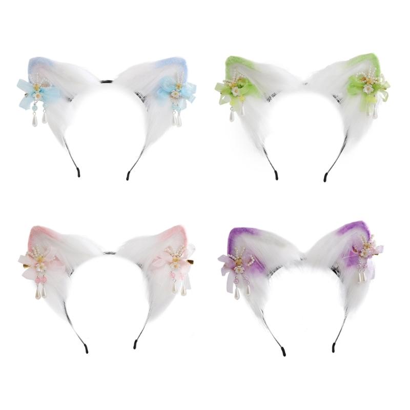 Bandeau Oreilles de Chat Dessin Animé avec Épingle à Cheveux Fleurie Support de Cheveux Accessoire de Tête Cosplay Fête