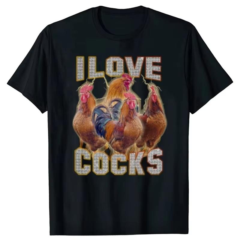 Mode J'aime les Coqs Meme Fermier Drôle T-shirt Amateurs de Poulets T-shirt Unisexe en Coton T-shirts Fitness Hauts Streetwear Vêtements Hommes