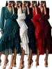 Robe de Soirée Sirène Imprimé Floral Épaules Dénudées Longue Robe à Volants