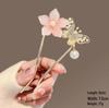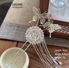 Épingle à cheveux vintage en forme de U avec pompon paon pour femmes - Épingle à chignon nacrée pour Cheongsam et Hanfu