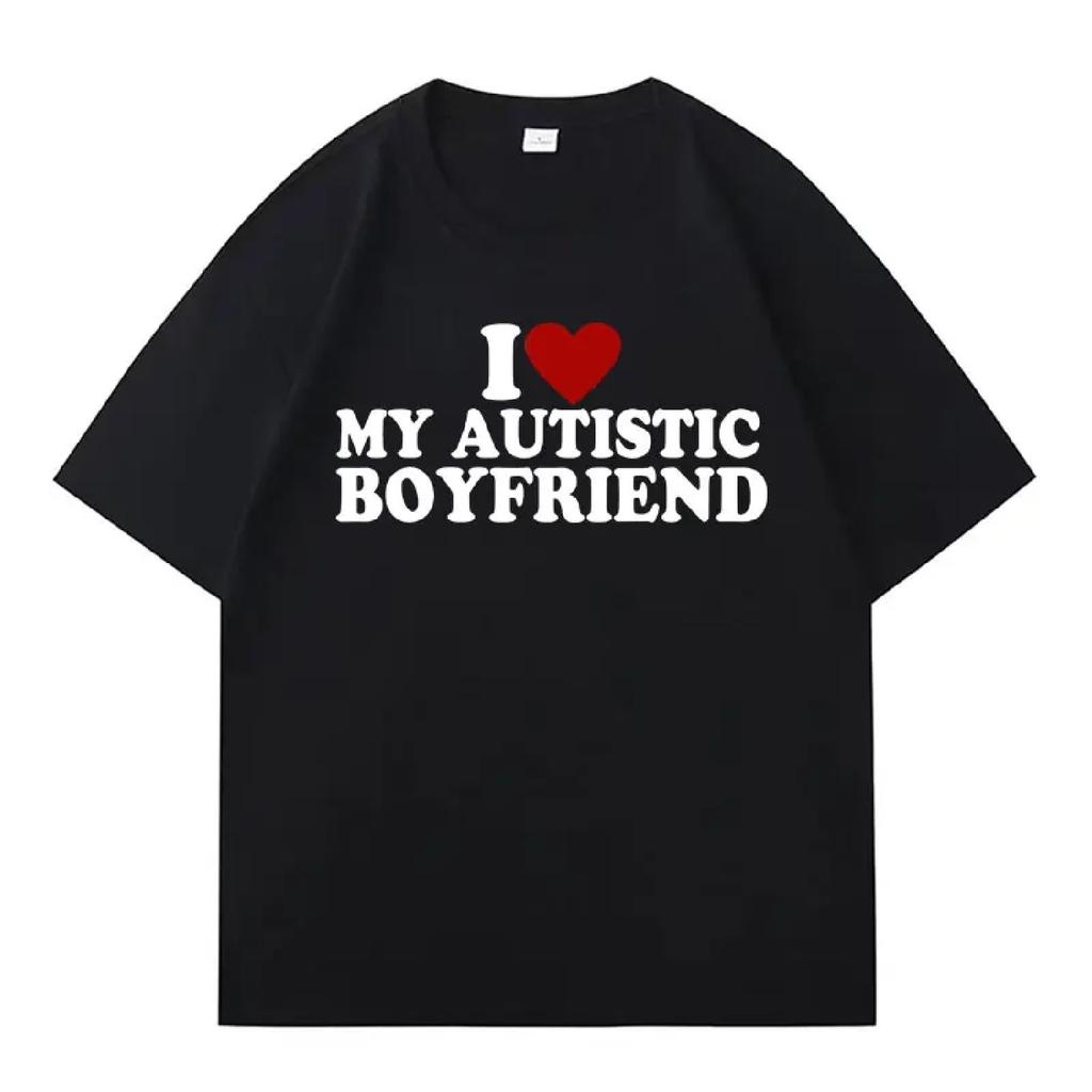 Je Cœur Amour Mon Petit Ami Petite Amie Autiste T-shirts Homme Drôles Oversize Coton Tendance Unisexes T-shirts Y2K Été Adolescents