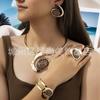 Vintage Leopard Print 5-piece Set Elegant Golden Letter Collar and Earrings, Ring, Bracelet Set