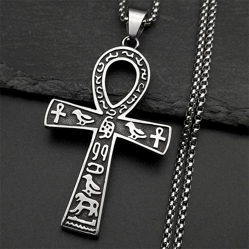 HNSP Pendentif Croix Ankh Égyptienne en Acier Inoxydable Collier Chaîne Vintage Gothique Accessoire