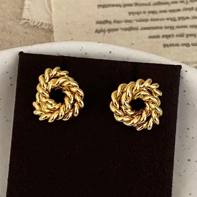 PONYKISS Sterling Silver 18K Gold Twisted Hollow Flower Stud Earrings for Women Minimalist Fine Trendy Accessories