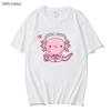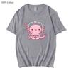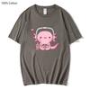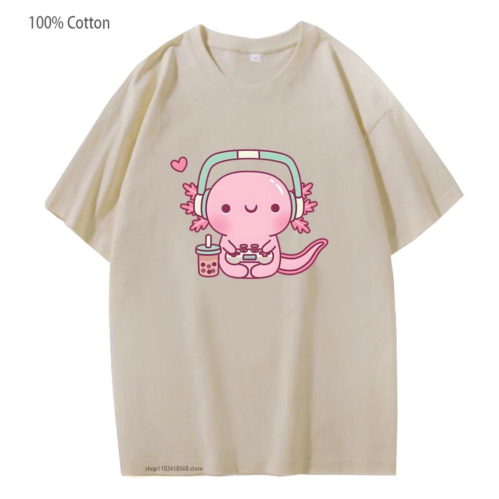 T-shirt mignon Axolotl jouant aux jeux vidéo Dessin animé Gamer Imprimé drôle T-shirt Vêtements pour femmes Vêtements pour hommes Y2k T-shirt en coton