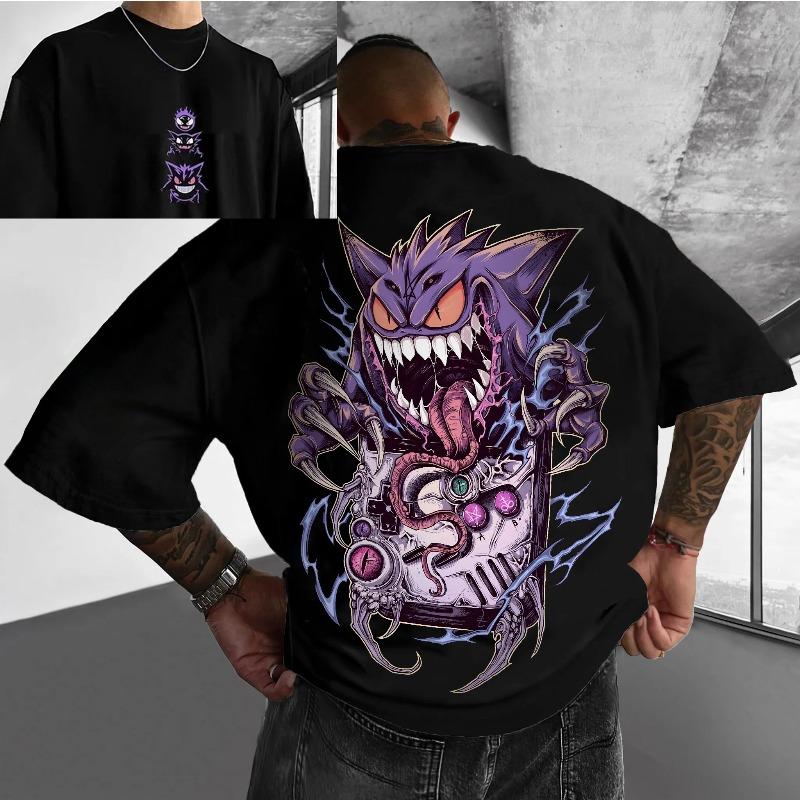 T-shirts Graphiques Gengar Japonais Vêtements Oversize Homme Harajuku Y2K Manches Courtes Homme 100% Coton Vêtements Décontractés