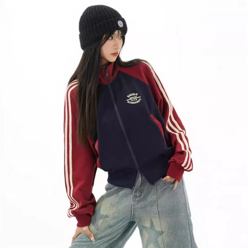 Veste Zippée Patchwork pour Femme Col Montant Casual Baseball