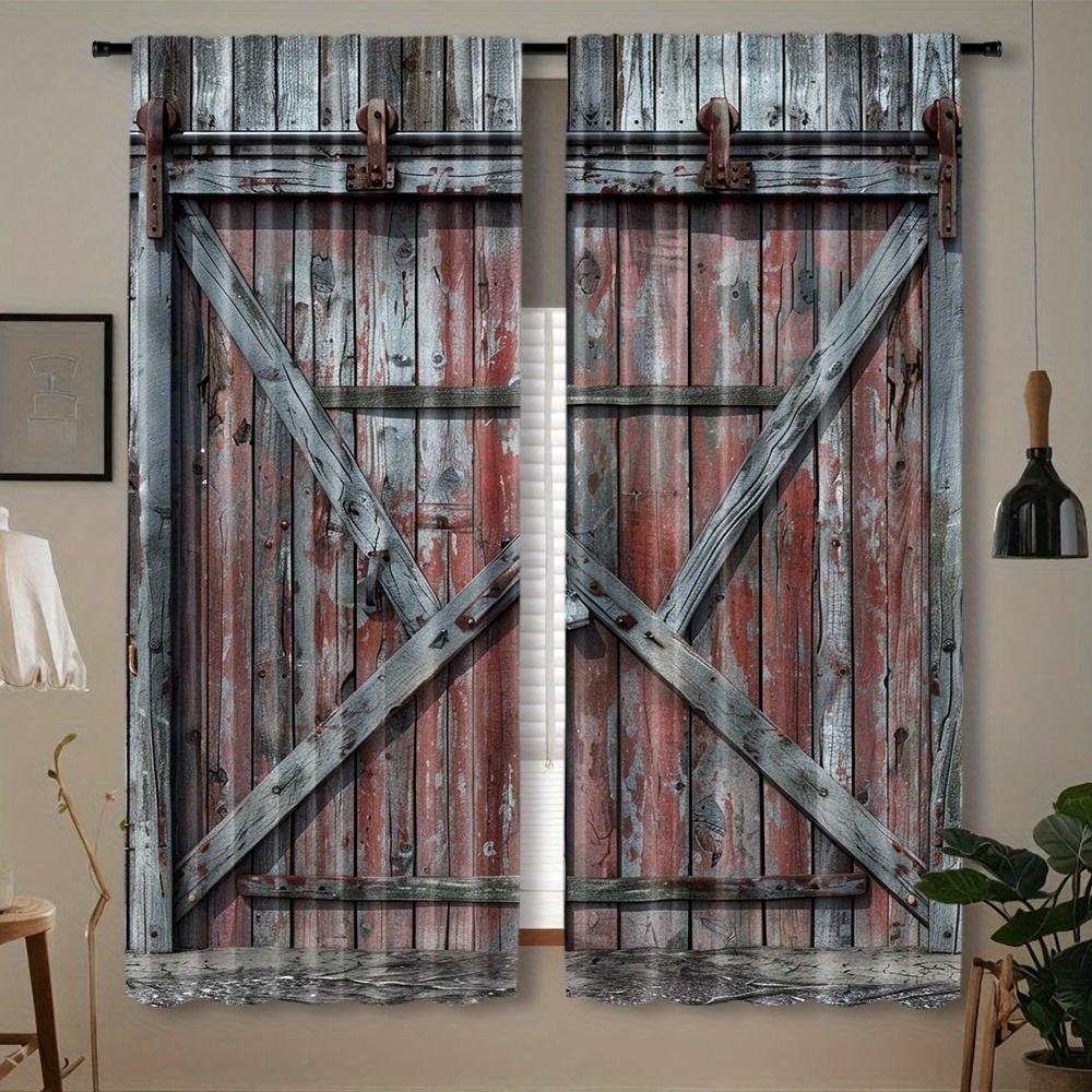 2pcs Rustic Door Pattern Curtains Decorate Window Treatment Rod Pocket Mount Digital Printed Curtains Polyester Material S