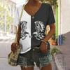 T-Shirt pour femmes, vêtements d'été, imprimé cheval 3d, Harajuku, sweat-shirt, chemisier, col en v, surdimensionné, manches courtes, bon marché
