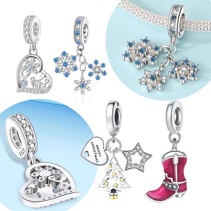 New Copper Original Christmas Series Snowflake Charms Heart Star Beads For Women Diy Fine Jewelry Party Gifts Making
