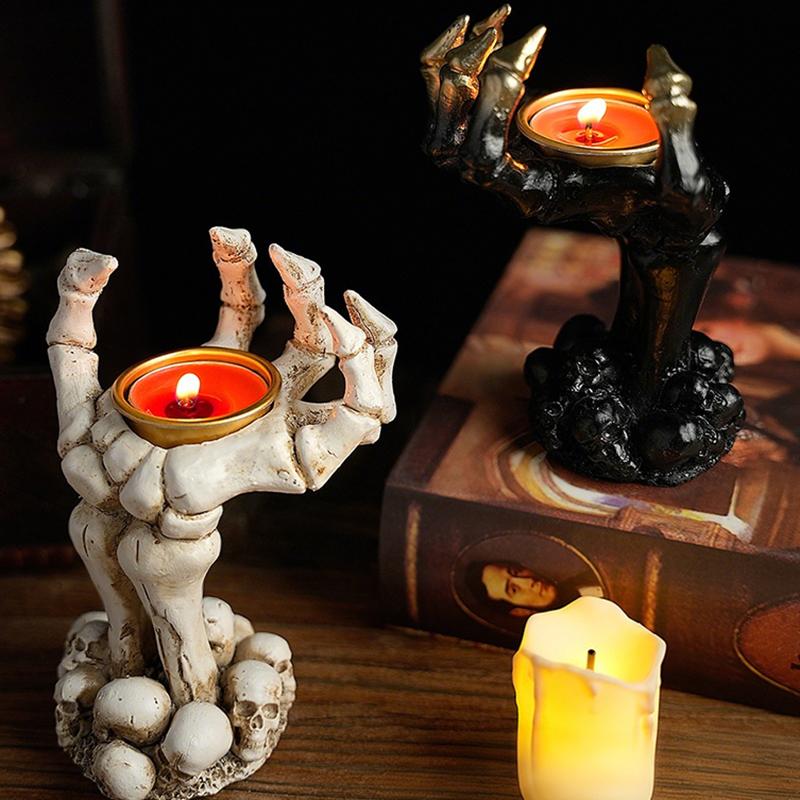 Halloween Crâne Main Bougeoir Candélabre Ornements Résine Crâne Halloween Décoration de Bureau Porche Cadeaux Décoration Pour Table