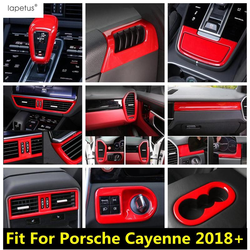 Tête de Levier de Vitesse Rouge / Leve-vitre / Porte-gobelet / Bande de Couverture d'Écran de Tableau de Bord Accessoires de Garniture Pour Porsche Cayenne 2018 -