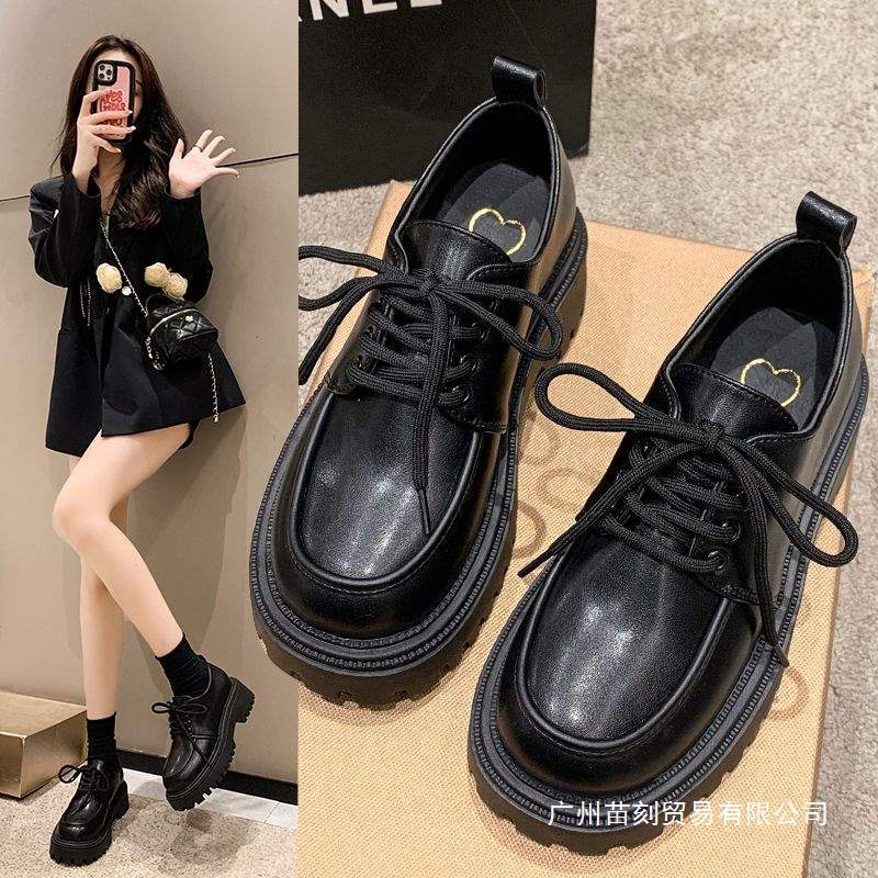 Chaussures basses à lacets en cuir véritable très souple pour le printemps et l'automne, dentelle noire, semelle épaisse, velours quatre saisons, style britannique, petites chaussures en cuir