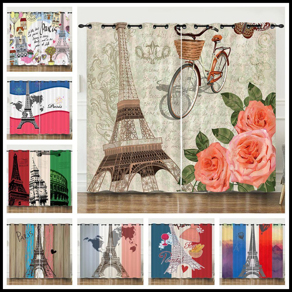 Rideau Illustration Peinte à la Main Tour Eiffel Rideau Impression Numérique 3D Rideau Occultant
