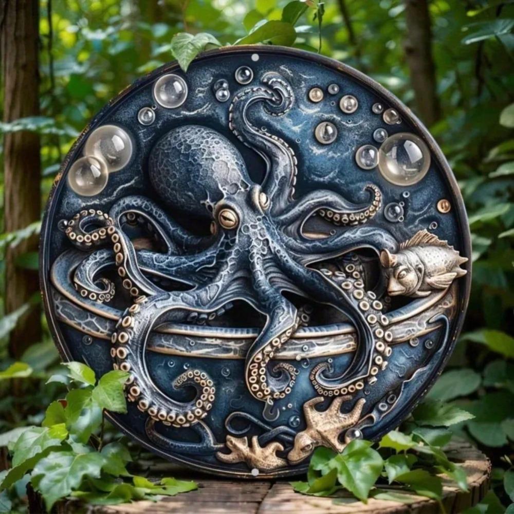 Art Mural Métallique Poulpe Vintage Décor Maison Bureau
