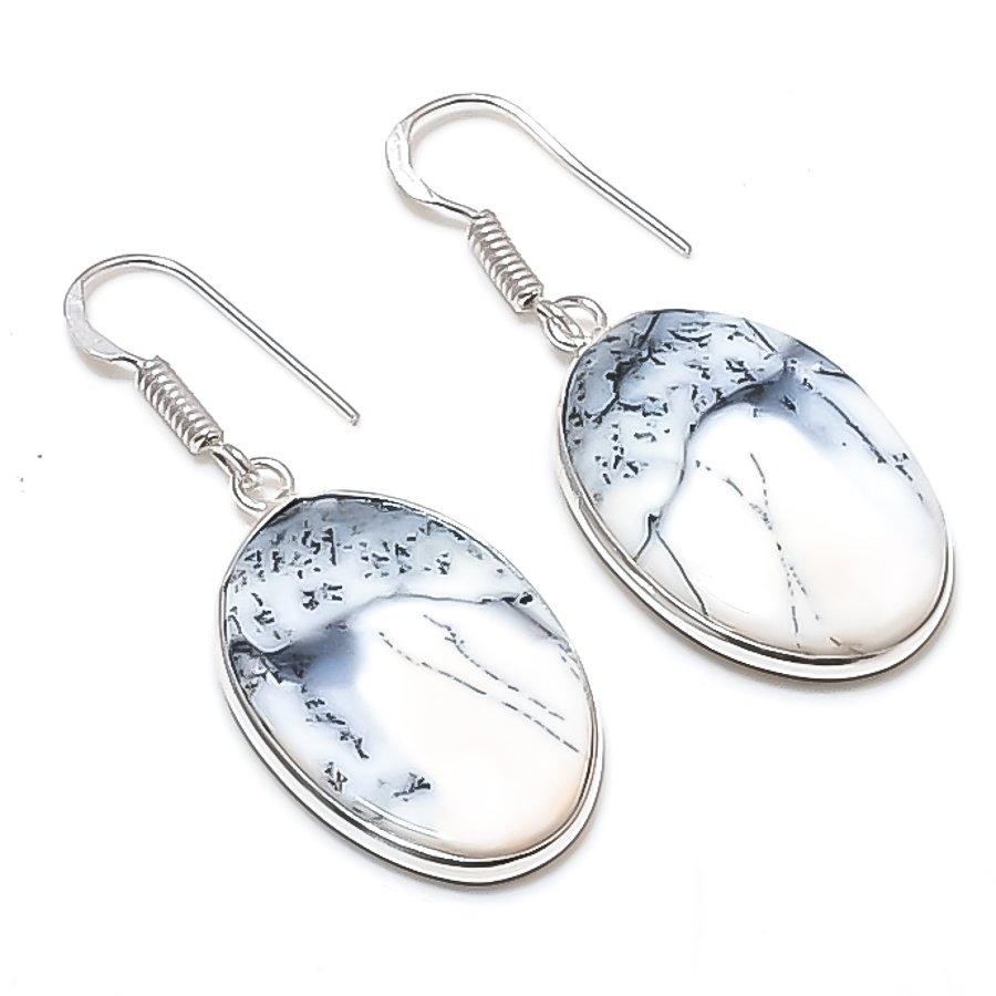 Boucle d'oreille Bijou en Argent Sterling 925 Pierre Précieuse Opale Dendritique Naturelle 1,77" AEE-11178