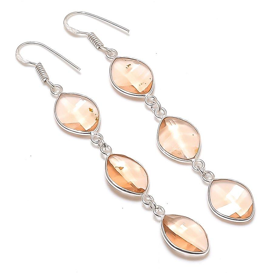 Natural Morganite Gemstone 925 Sterling Silver Jewelry Earring 3.07" AEE-11293