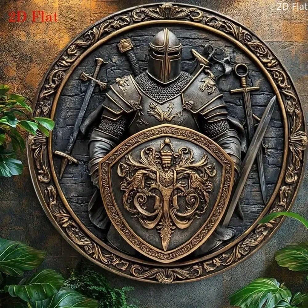 Medieval Knight Shield Sword Aluminum Metal Wall Art Vintage Armor Decorative Plaque 8x8 Inch