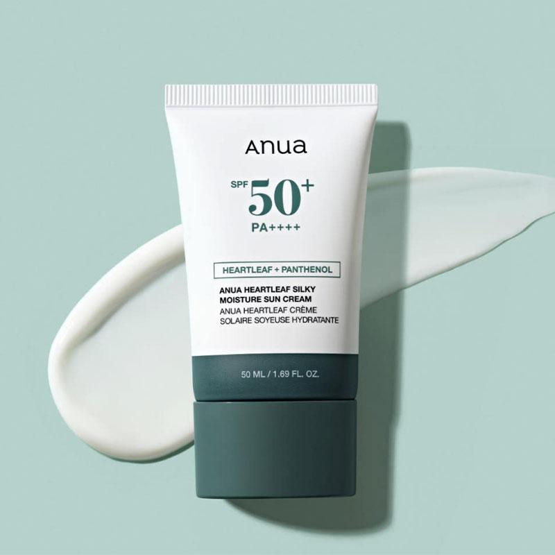 La Crème Solaire Hydratante Soie Feuille de Cœur Anua offre une protection UV puissante tout en apportant une hydratation légère et soyeuse.. Formulé avec de l'extrait de Houttuynia cordata, ce écran solaire aide à apaiser les peaux sensibles et à maintenir l'équilibre de l'hydratation sans laisser de traces blanches ni de fini collant.