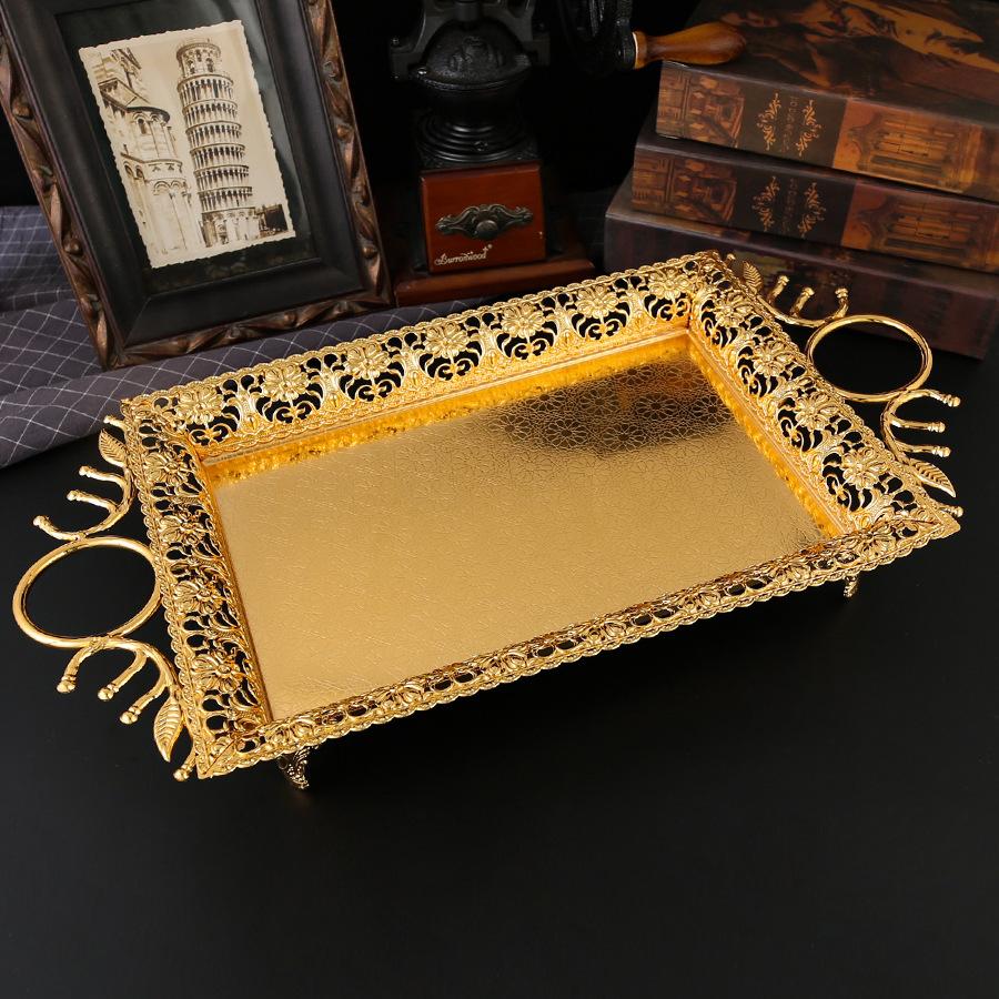 Plateau européen en métal luxe léger plateau à fruits salon de la maison table basse restaurant plateau à thé plateau à snacks ornement