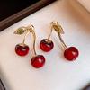 Boucles d'oreilles Puces Cerise en Résine Zirconium Frais Français Mode Polyvalentes Personnalité Boucles d'oreilles Femmes
