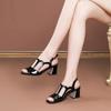 Women's Summer PU Leather Open-Toe Chunky Heel Sandals with Single Strap Buckle Mid-Heel Comfortable Commuter Shoes