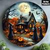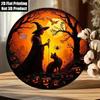 Décoration Murale Ronde en Aluminium Halloween Sorcière Chat Citrouille 20x20 cm pour la Maison