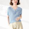 V-neck White Ice Silk Sweater T-shirt for Women Summer New Half-sleeved Slim-fit Top with Front Shoulders and Vests