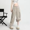 Grey Overalls Women Hot Season Thin New High Waist, Wide Legs and Straight Casual American Sweatpants