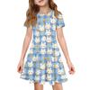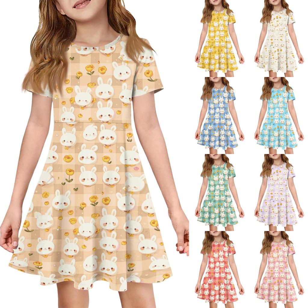 Robe d'été pour fille Couleur & Imprimé Manches Courtes Avec Poche Robe Décontractée Manches Courtes Robe de Soirée Jour de Pâques