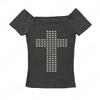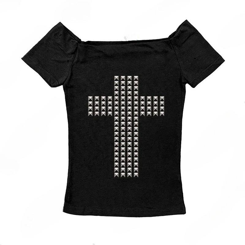 T-shirt Manches Courtes Femme 2KWEIRD Punk Rock Hip Hop Gothique Sexy Aminci Chic Basiques Décontractés Décor Métallique Crop Tops Vêtements Emo Girl Y2K