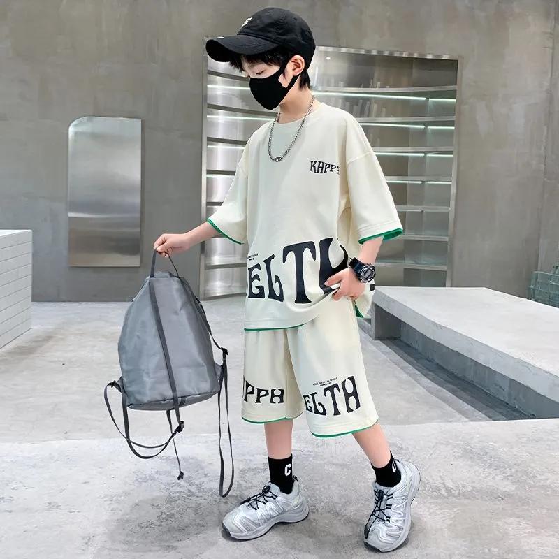 Ensemble de vêtements d'été pour enfants pour garçons Imprimé Lettres Survêtement Tenues pour enfants et adolescents T-shirt décontracté à manches courtes + short Survêtement Costume