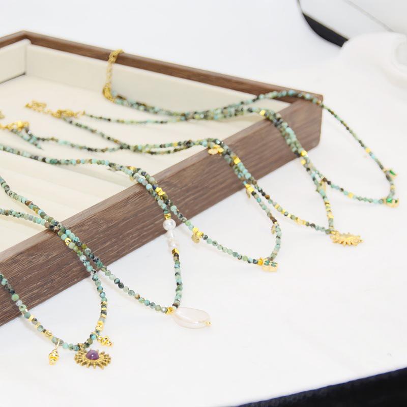 Collier en Perles de Pin Africain: Collier Ras-du-cou Pendentif Améthyste & Acier Titane avec Pierres Naturelles de Luxe Vintage.