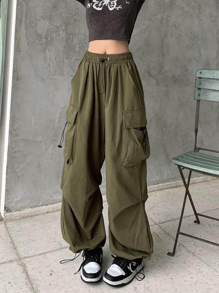 Streetwear Workwear Pants Women Summer Loose Wide Leg Cargo Pants with Large Pockets