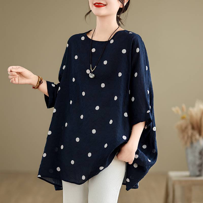 Manches Courtes Surdimensionné Coton Vintage Pois Décontracté Ample Été T-shirt Tee Shirt Femmes T-shirt Femme T-shirt Hauts Vêtements