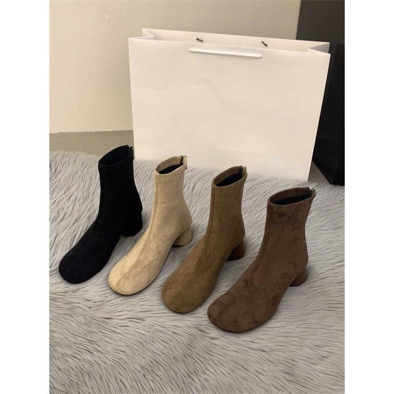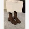 High Heel Suede Skinny Short Boots Women's Season Brown Martin Boots French Small Ankle Boots