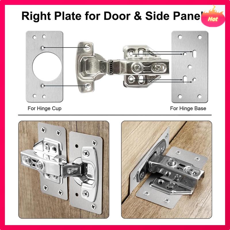 Lot de 4 Plaques de Réparation de Charnière d'Armoire Avec Lot de 2 Charnières d'Armoire à Fermeture Douce à Recouvrement Total - Plaque Kit de Réparation de Charnière Pour Armoire Durable