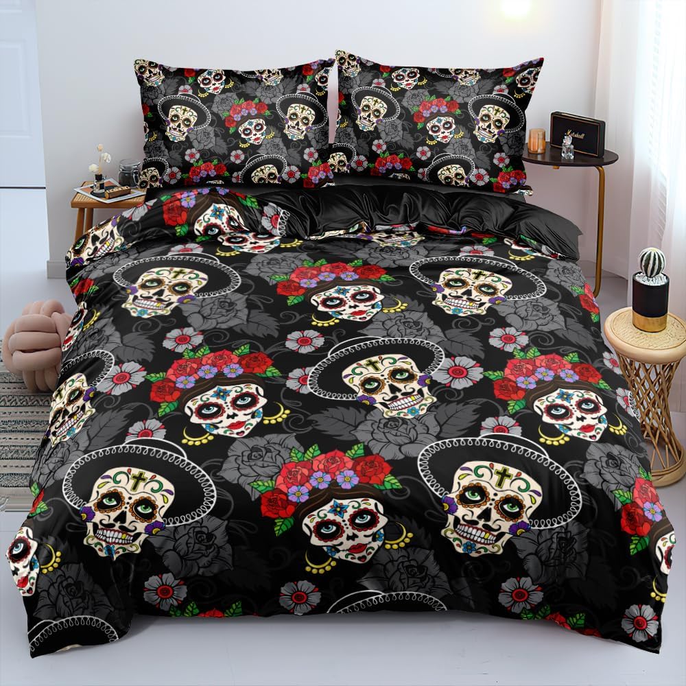 Large 3D Skull Duvet Cover Halloween Bedding Set Spooky Bedding Set For Boys Horror Gothic Bedroom Decor 3 Piece Set No Quilt