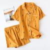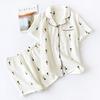 Ensemble pyjama femme tendance, été, confortable, en gaze de coton, col à revers, coupe fine et confortable, imprimé carotte. Service à domicile.