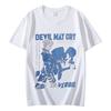T-shirt à manches courtes, style vintage, surdimensionné, unisexe, décontracté, en coton, style streetwear, avec imprimé Devil May Cry