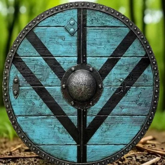 This Ragnar Style Viking Shield is made from high-quality wood and reinforced for durability, giving it an authentic medieval appearance. The round design, combined with a strong central boss, mirrors the shields used by Viking warriors during raids and battles. Its handmade construction ensures each shield has a unique character, making it a standout piece for collectors and enthusiasts.